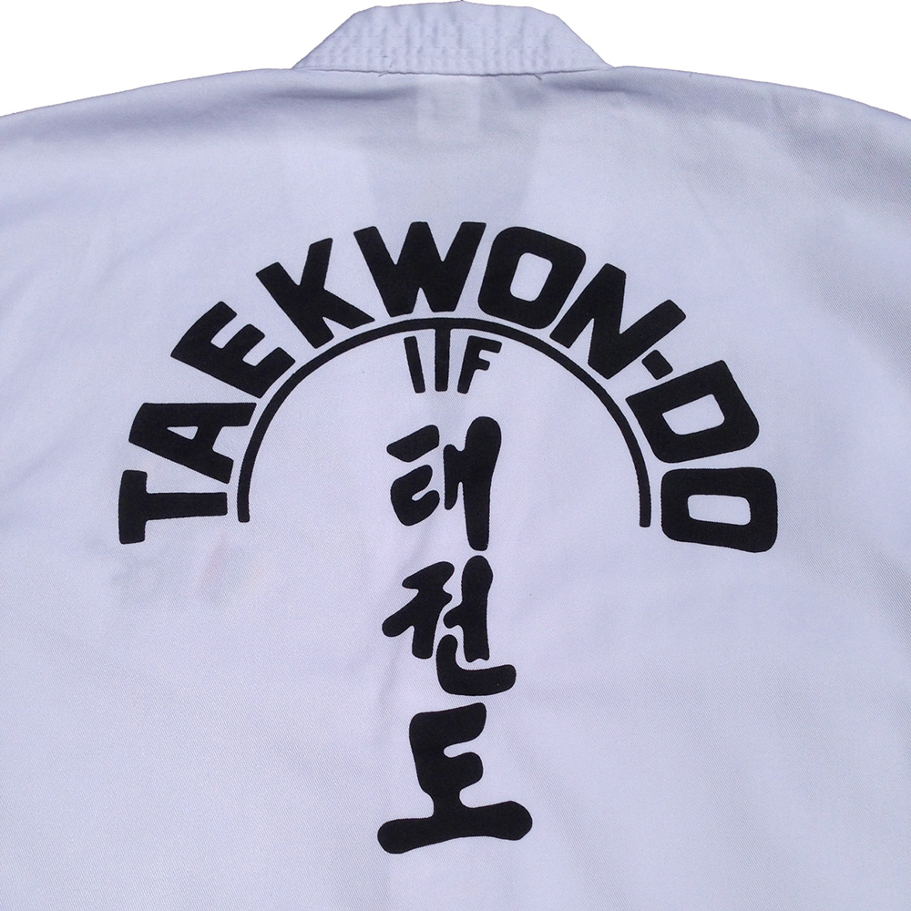 New high quality ITF approved beginner Taekwon-Do uniform (dobok). They have fully embroidered badges with screen printed logos on the back and pants. See below for approximate size guide for doboks.